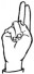 На ћирилици написано ДУШИЦА ЋУСЛОВИЋ састоји се из 14 слова [?]. Исписано ћириличном једноручном азбуком за глувонеме: